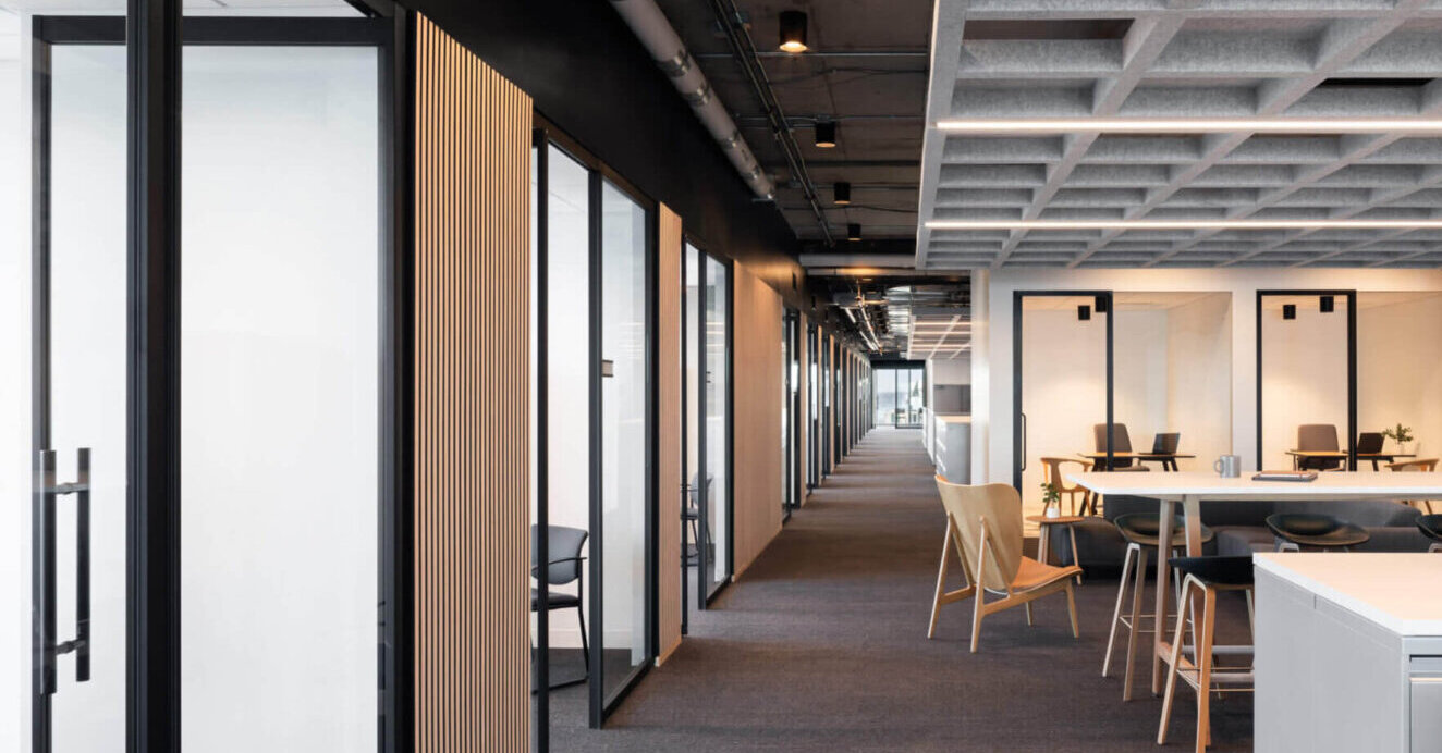 For the private offices, Meso provided Kai glass fronts by Falkbuilt with pivot doors. We helped the client and project team visualize the final result for their interior glass walls during the design process with the use of photo-realistic renderings.